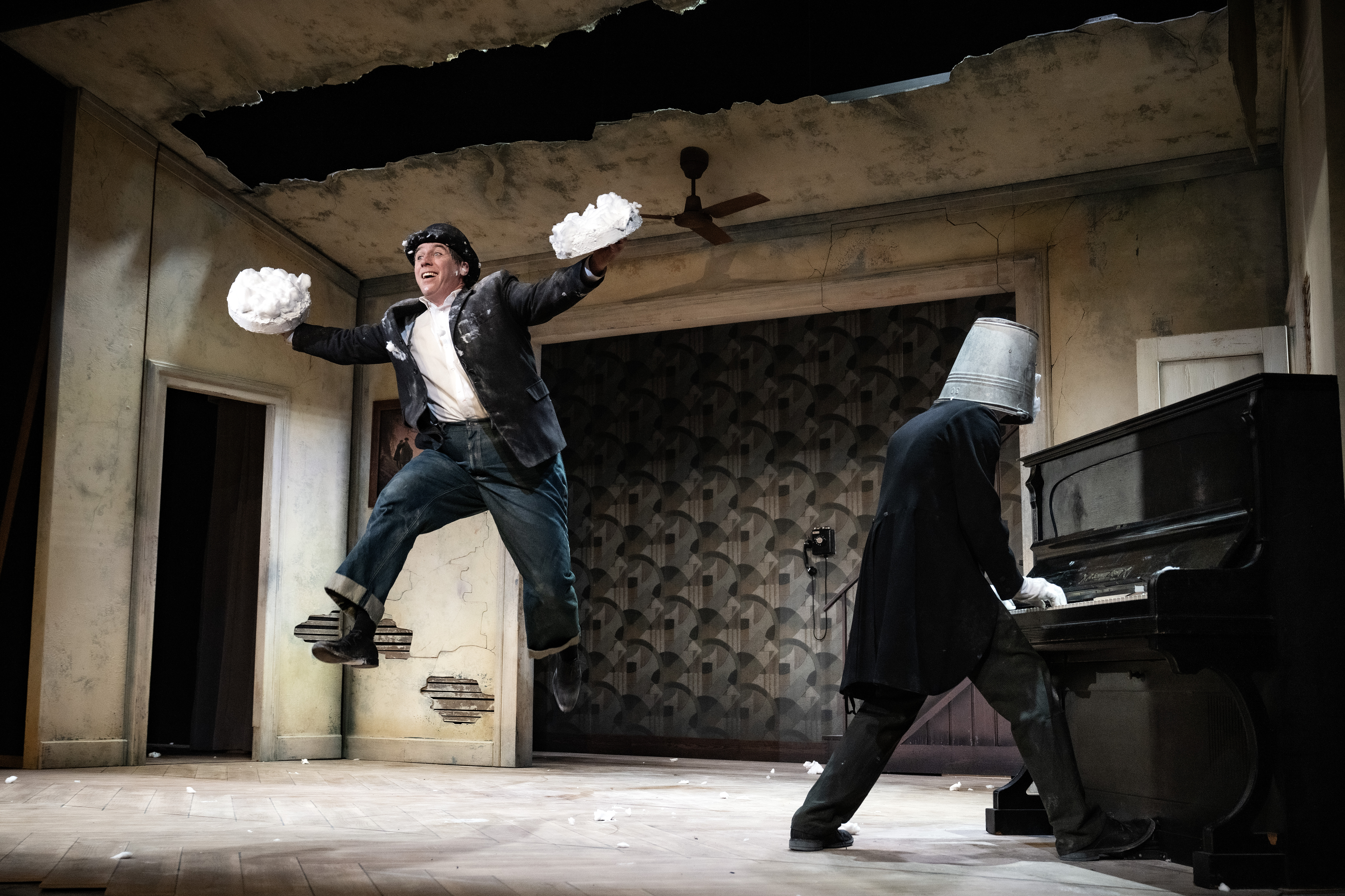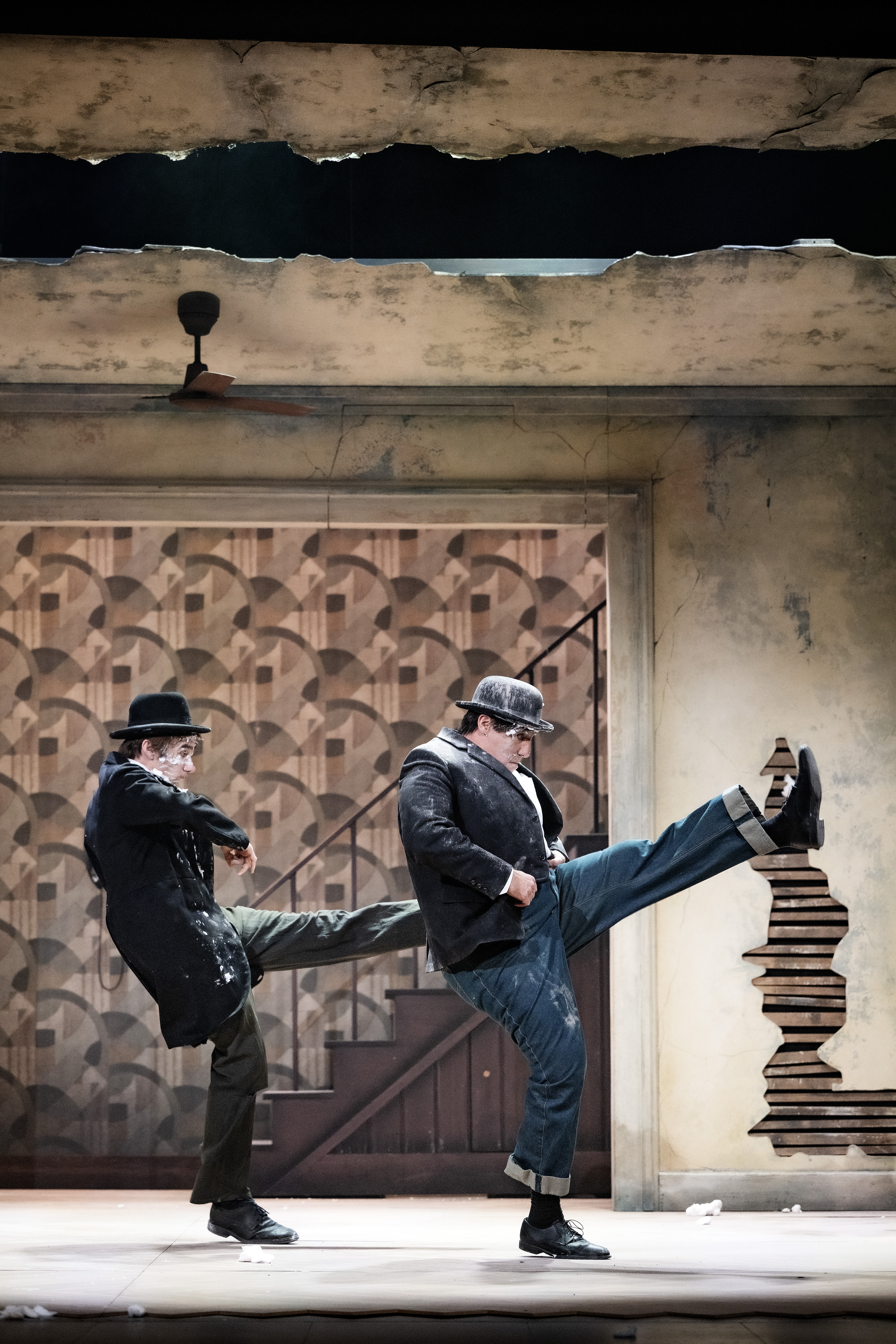 Der Legende nach hatte Beckett beim Schreiben für sein bekanntestes Stück «Warten auf Godot» das legendäre Komiker-Duo Stan Laurel und Oliver Hardy als Besetzung vor Augen. Laurel schrieb die Sketche, Hardy spielte sie. 1957 starb Oliver Hardy. Damit endete auch das Berufsleben von Stan Laurel. Trotzdem schrieb er für sich und sein auseinandergerissenes Duo weiterhin Drehbücher, als würde er darauf warten, dass sein «brother in crime», sein «brother in comedy» doch noch zurückkehren könnte. Inspiriert von Laurel, Hardy und Beckett, hauchen Merker und Hitz der Tradition der existenziellen Clownerie mit ihren eigenen Mitteln neues Leben ein. Nach den gefeierten Gastspielen von «Lachen verboten!» und «Kafka in Farbe» freuen wir uns, die Slapstick- und Komödienspezialisten Max Merker und Aaron Hitz aus Solothurn wieder auf unserer Bühne zu sehen.
